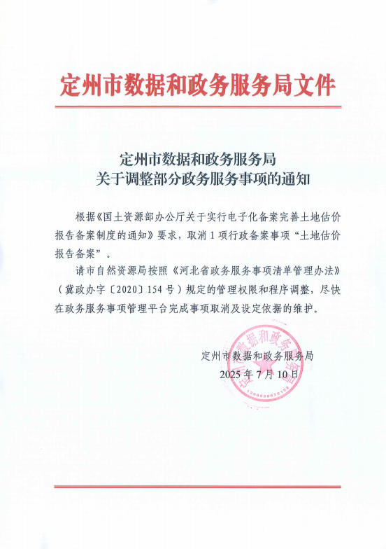 定州市數(shù)據(jù)和政務服務局關于調整部分政務服務事項的通知