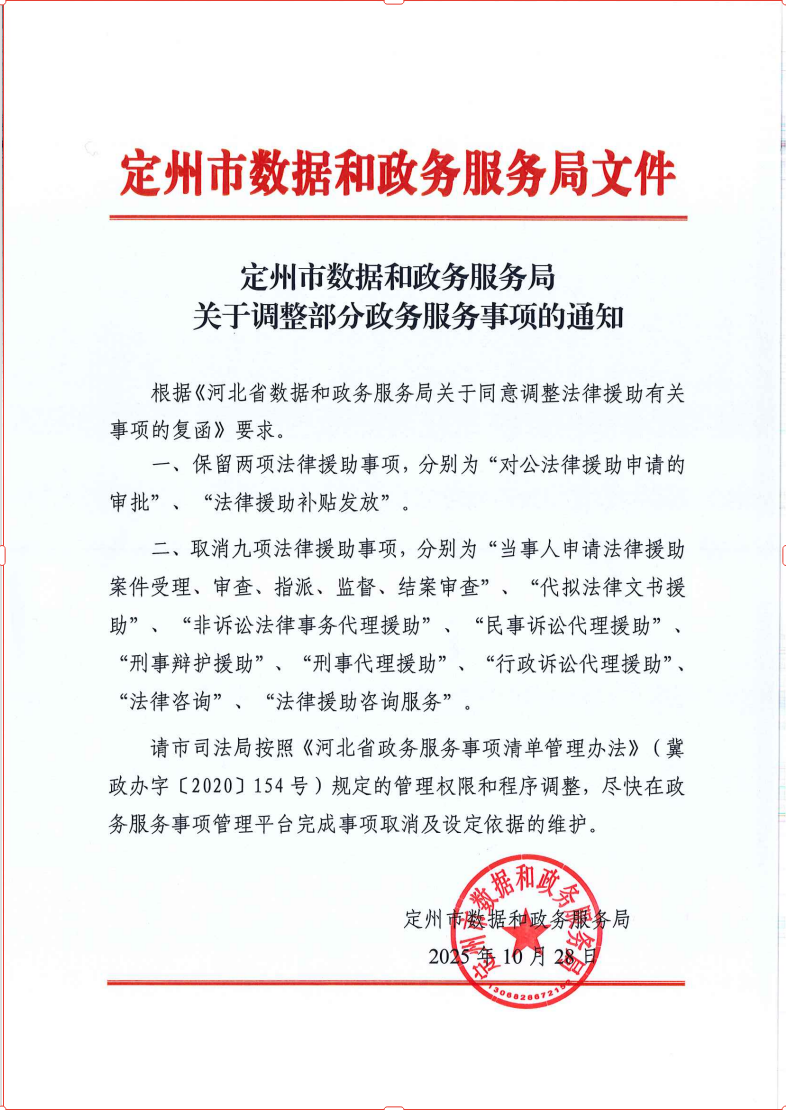 定州市數(shù)據(jù)和政務(wù)服務(wù)局關(guān)于調(diào)整部分政務(wù)服務(wù)事項(xiàng)的通知