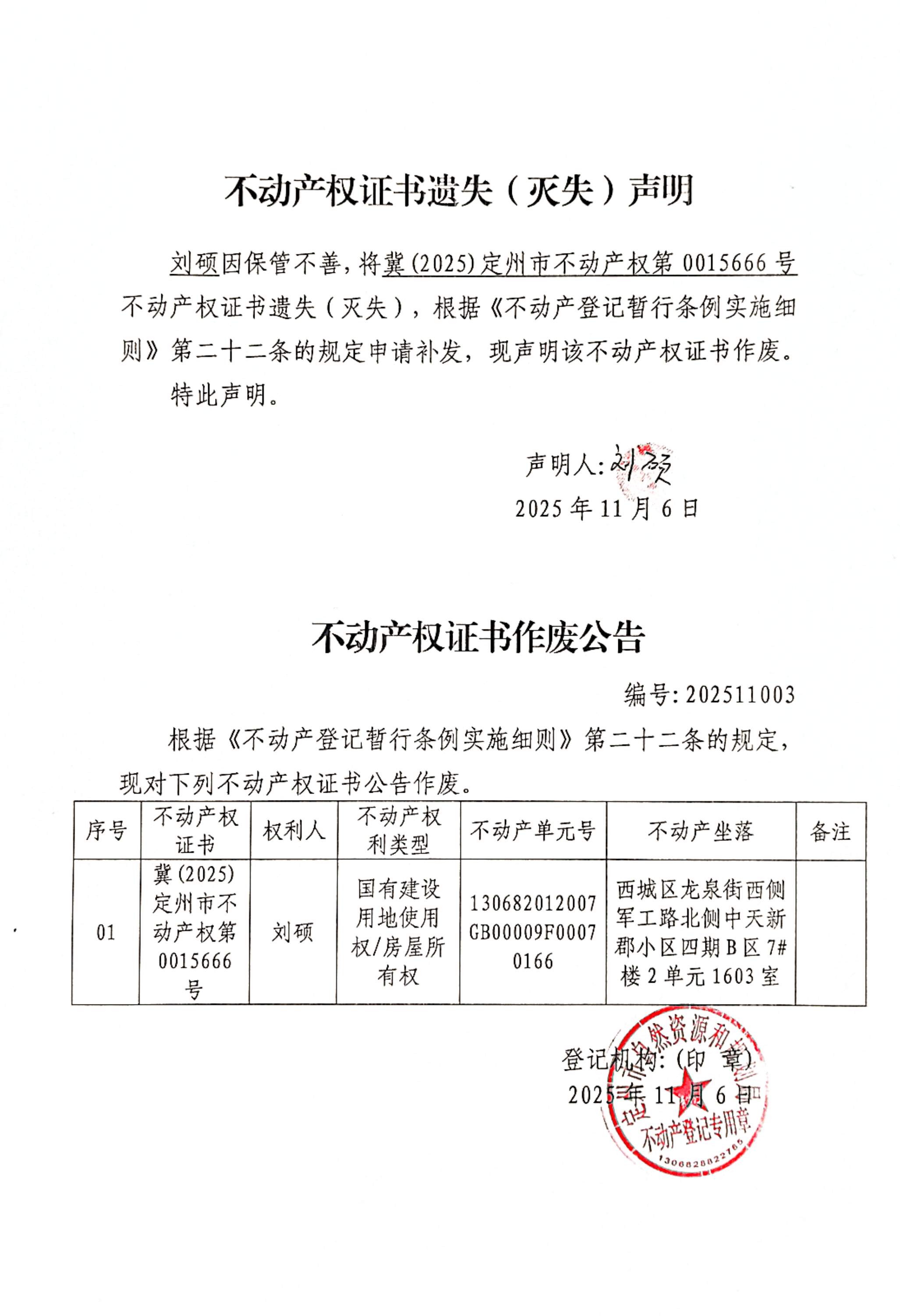 不動(dòng)產(chǎn)權(quán)證書(shū)遺失(滅失)聲明