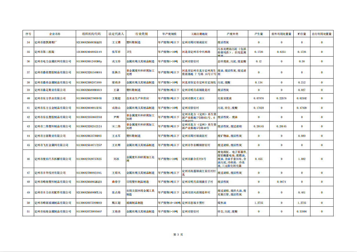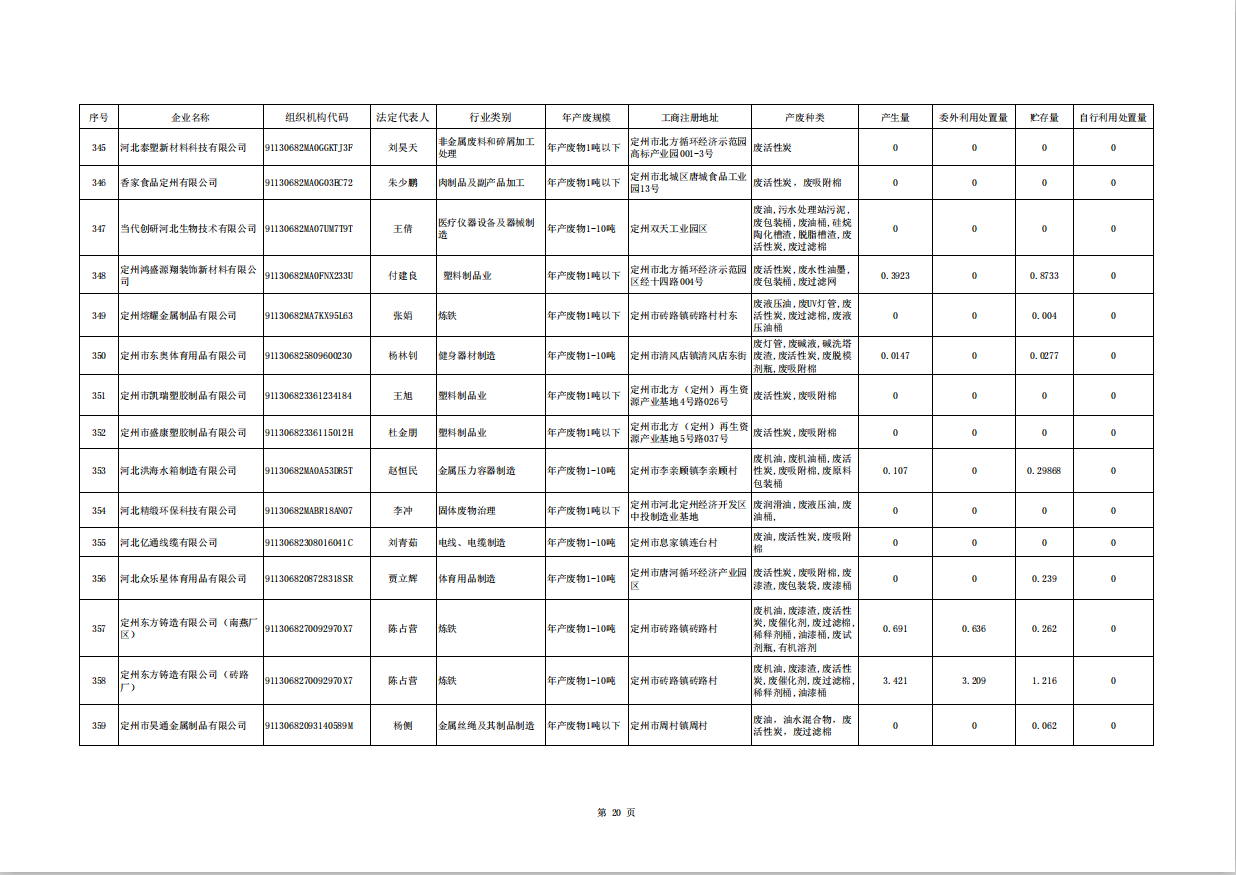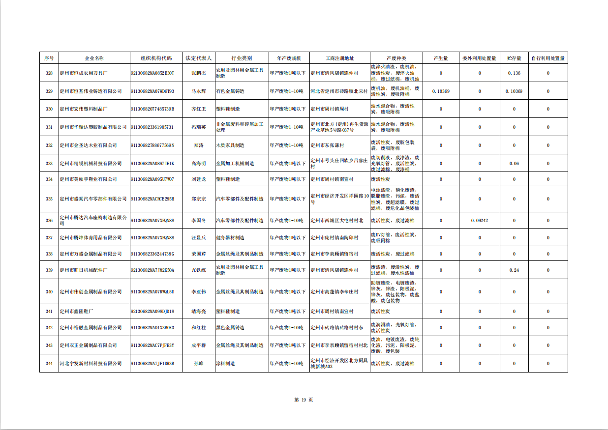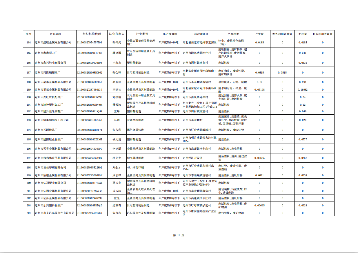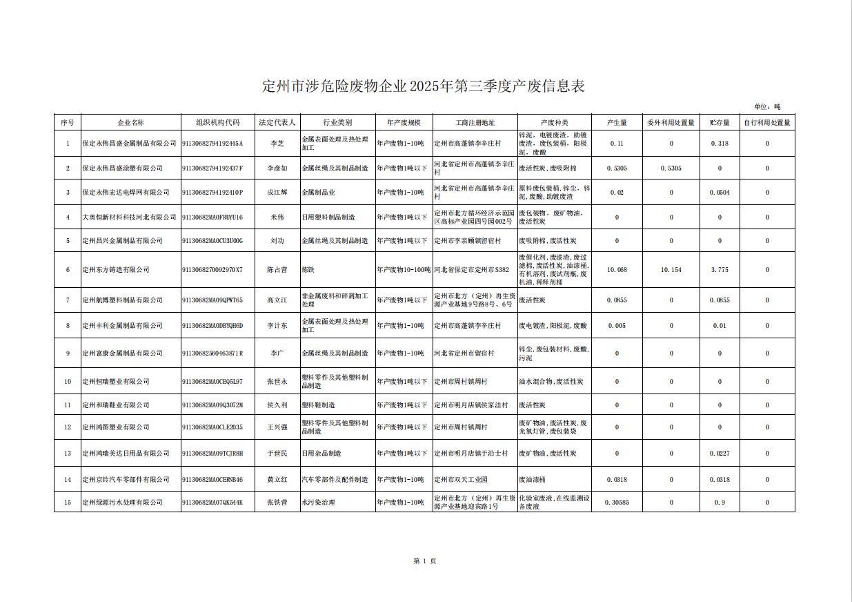 定州市涉危險廢物企業(yè)2025年第三季度產(chǎn)廢信息表