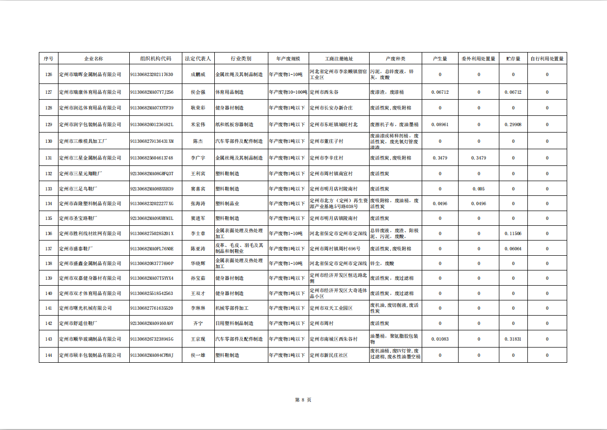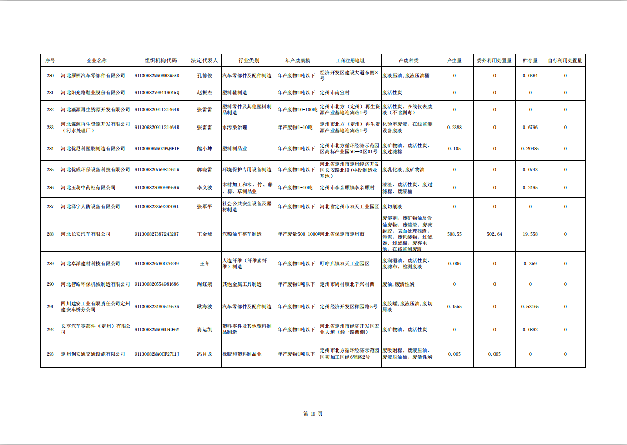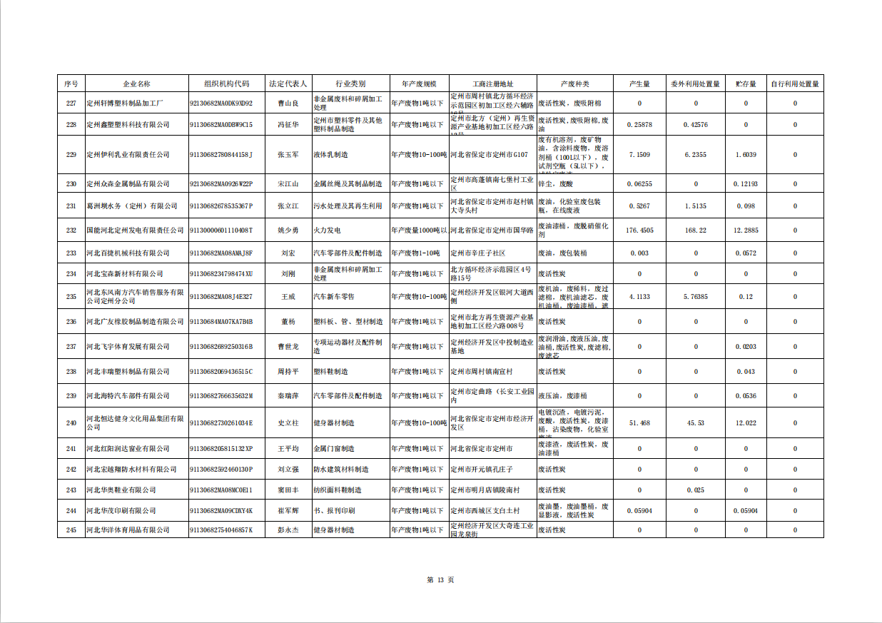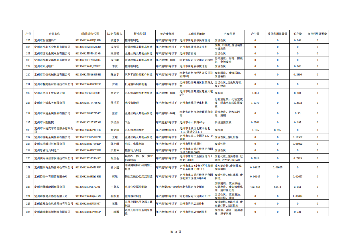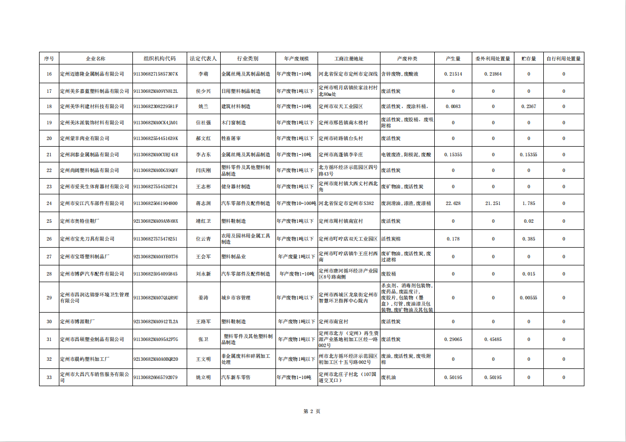 定州市涉危險廢物企業(yè)2025年第三季度產(chǎn)廢信息表