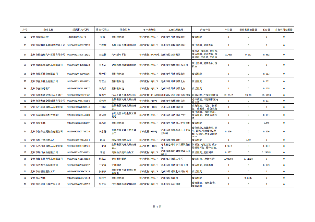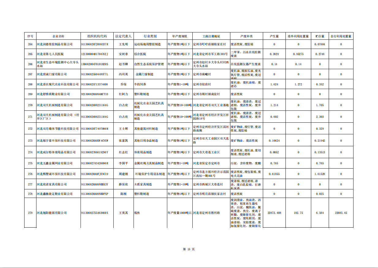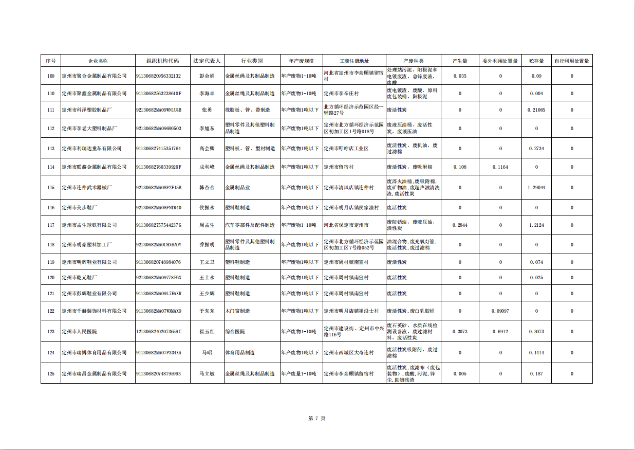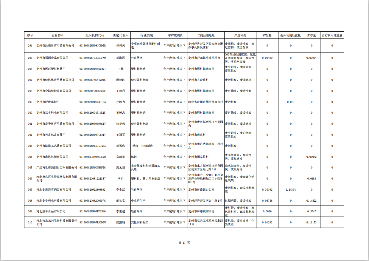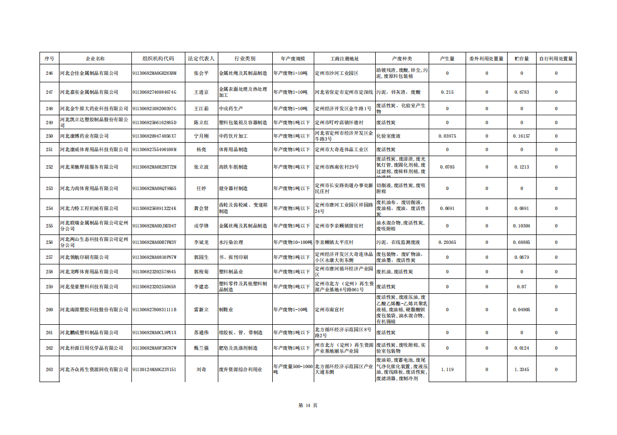 定州市涉危險廢物企業(yè)2025年第三季度產(chǎn)廢信息表
