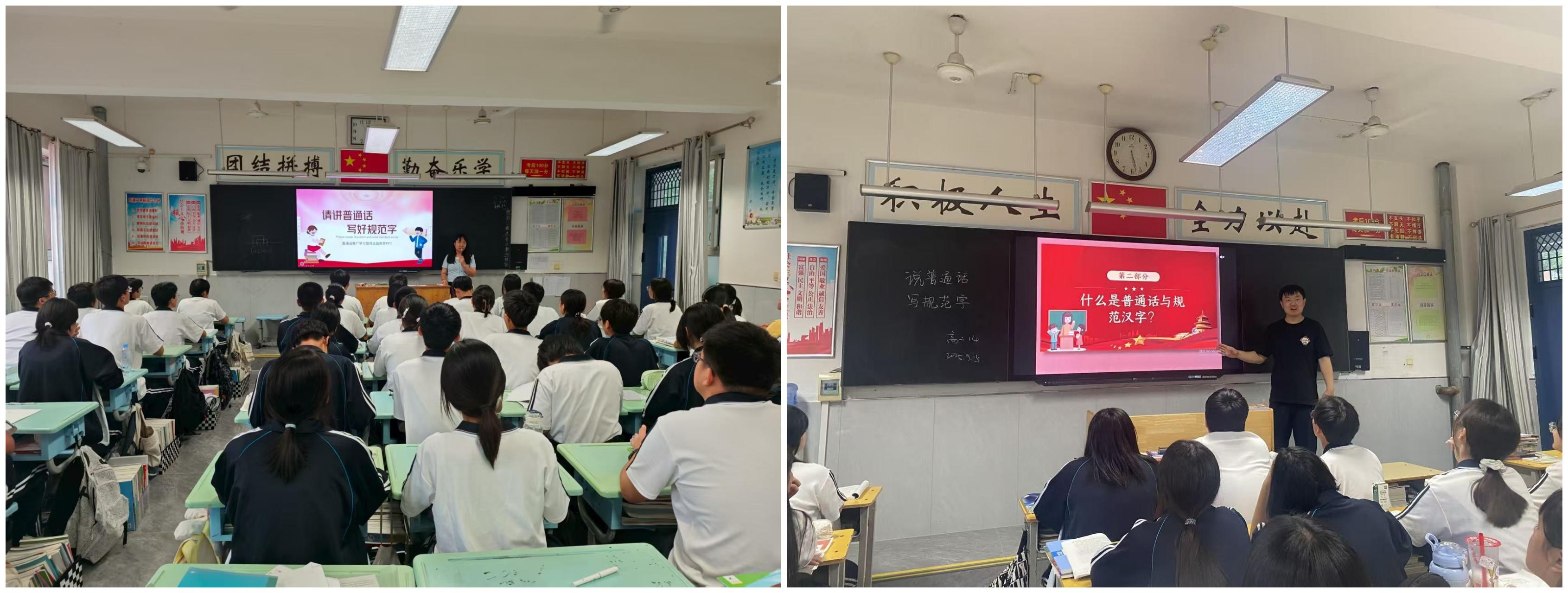 主題班會深研討,強化語言規(guī)范意識。各班級以“說好普通話,寫好規(guī)范字”為主題開展班會活動。班主任通過案例講解、互動問答等形式,向?qū)W生普及《中華人民共和國國家通用語言文字法》相關知識,分析不規(guī)范用語用字的弊端;學生分組討論“如何在家庭、校園中推廣普通話”,分享自己的推普小妙招,部分班級還組織了“普通話繞口令比賽”“規(guī)范字糾錯小游戲”,讓學生在趣味互動中深化對語言規(guī)范的認識。