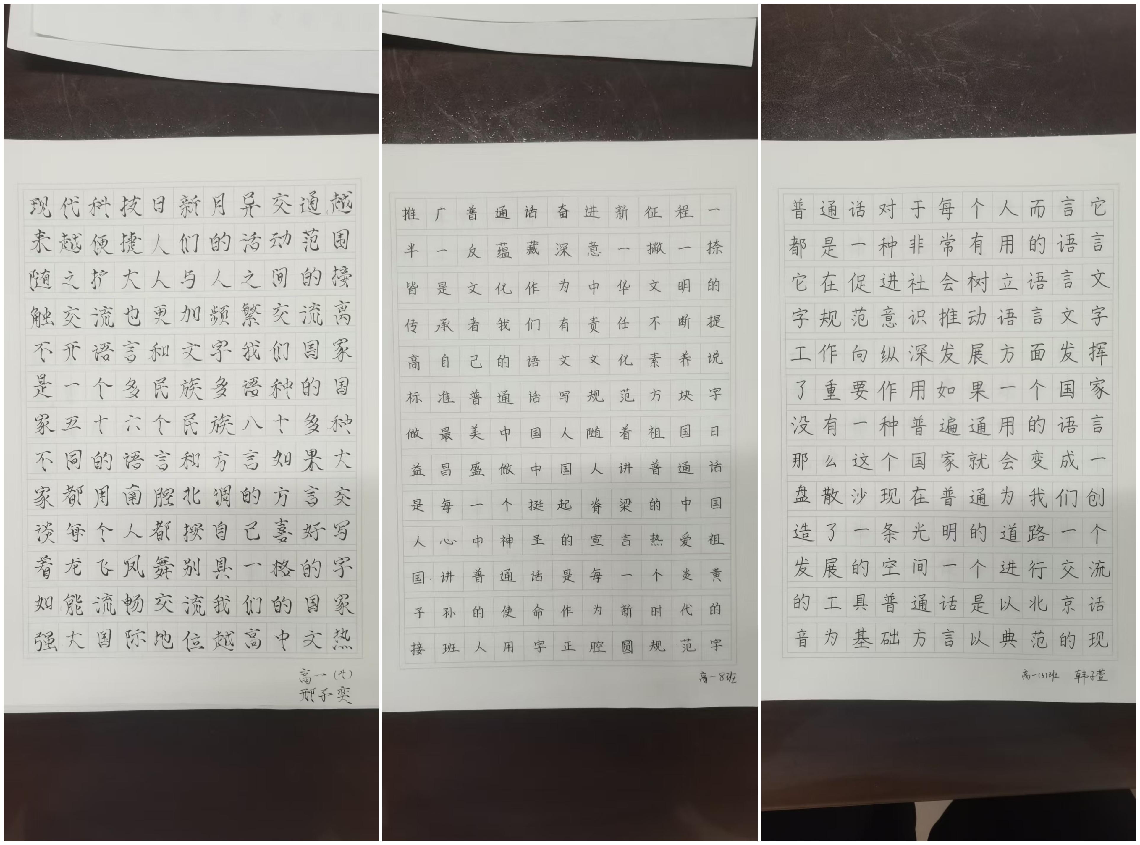 規(guī)范字書寫比賽,學生現(xiàn)場書寫經(jīng)典詩文,評委從字體結(jié)構(gòu)、筆畫規(guī)范、卷面整潔度等維度評分,最終評選出“規(guī)范字達人”10名,優(yōu)秀作品在教學樓大廳展示,營造“以寫規(guī)范字為榮”的氛圍。