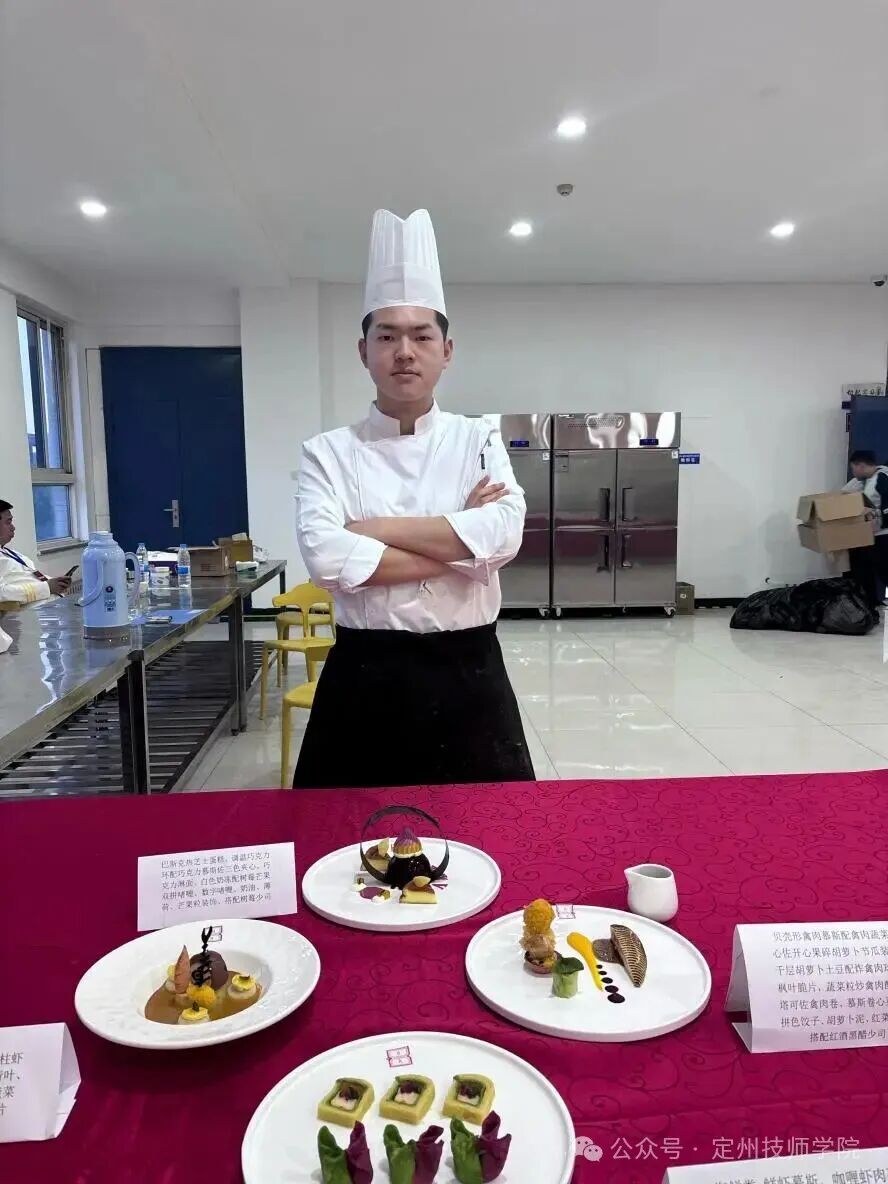 2023年,宋佳賀同學(xué)榮獲“美·大董杯”河北省職業(yè)院校技能大賽烹飪(西餐)項目比賽二等獎;2025年,在河北省第二屆職業(yè)技能大賽烹飪(西餐)項目中,又獲得金牌,并入選河北省國家集訓(xùn)隊,備戰(zhàn)第三屆全國職業(yè)技能大賽。