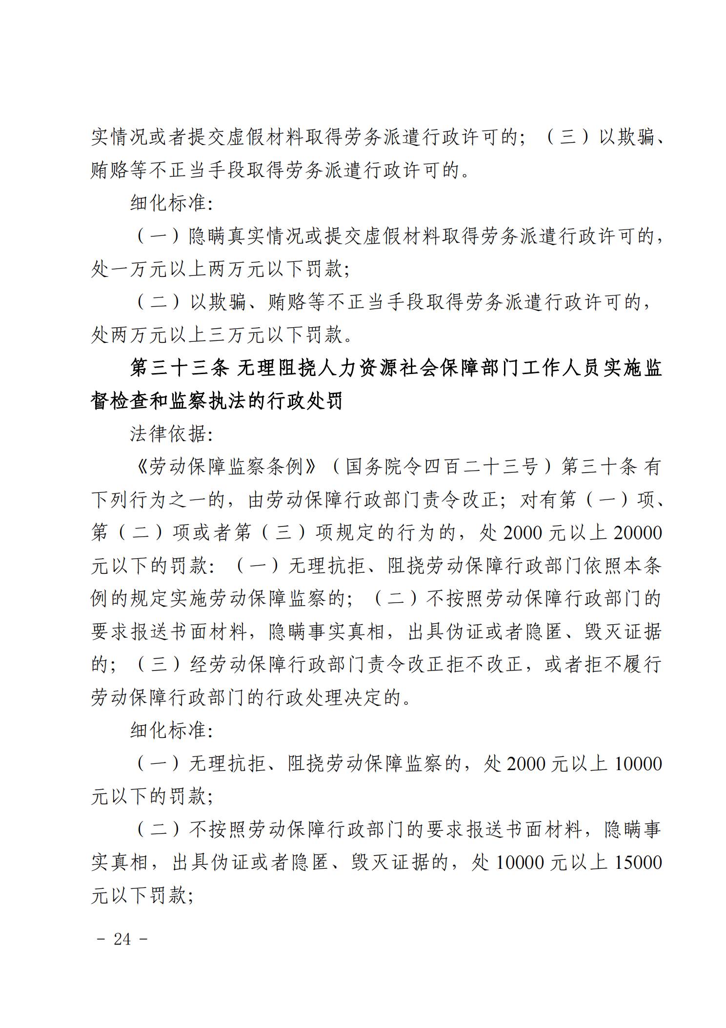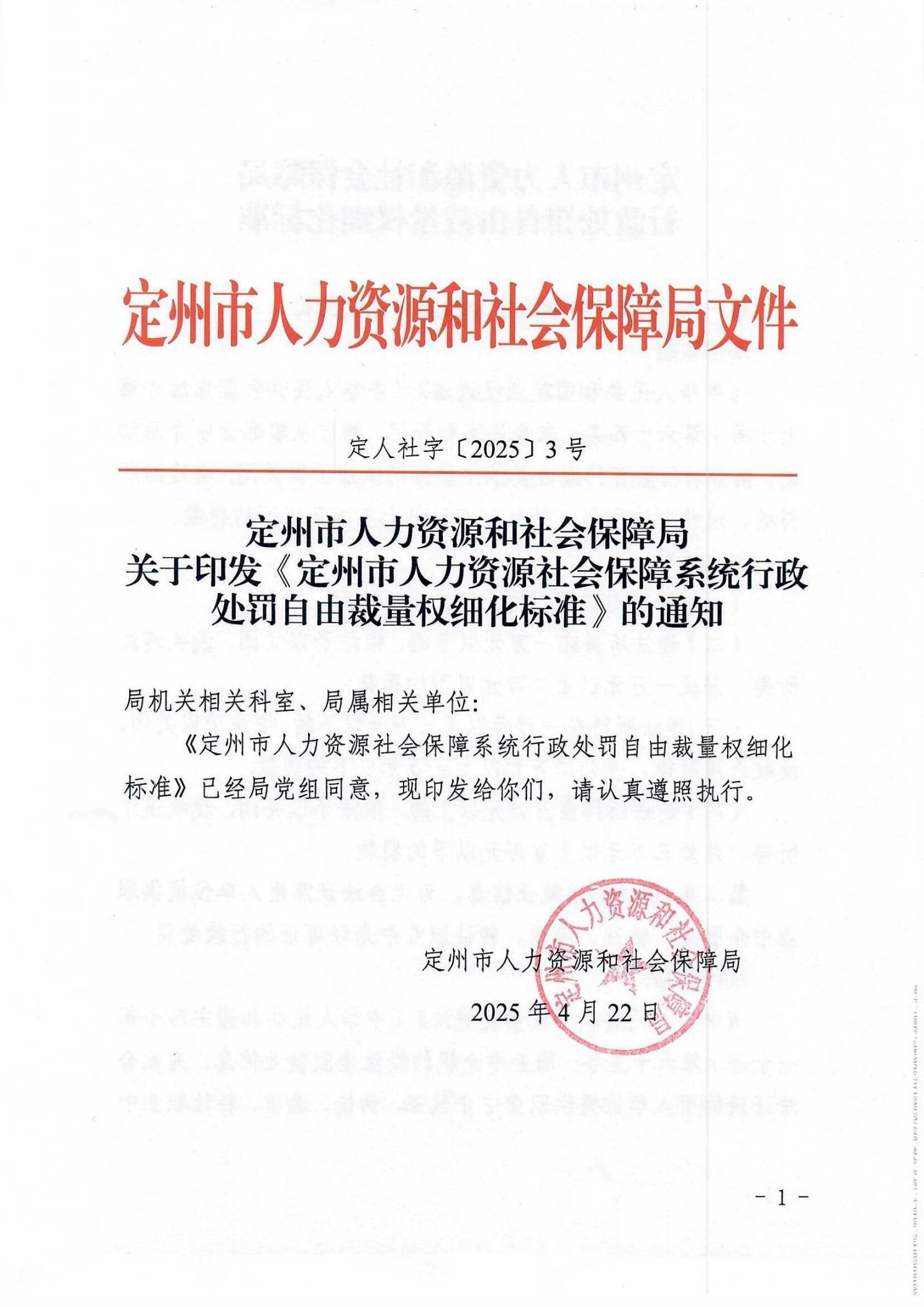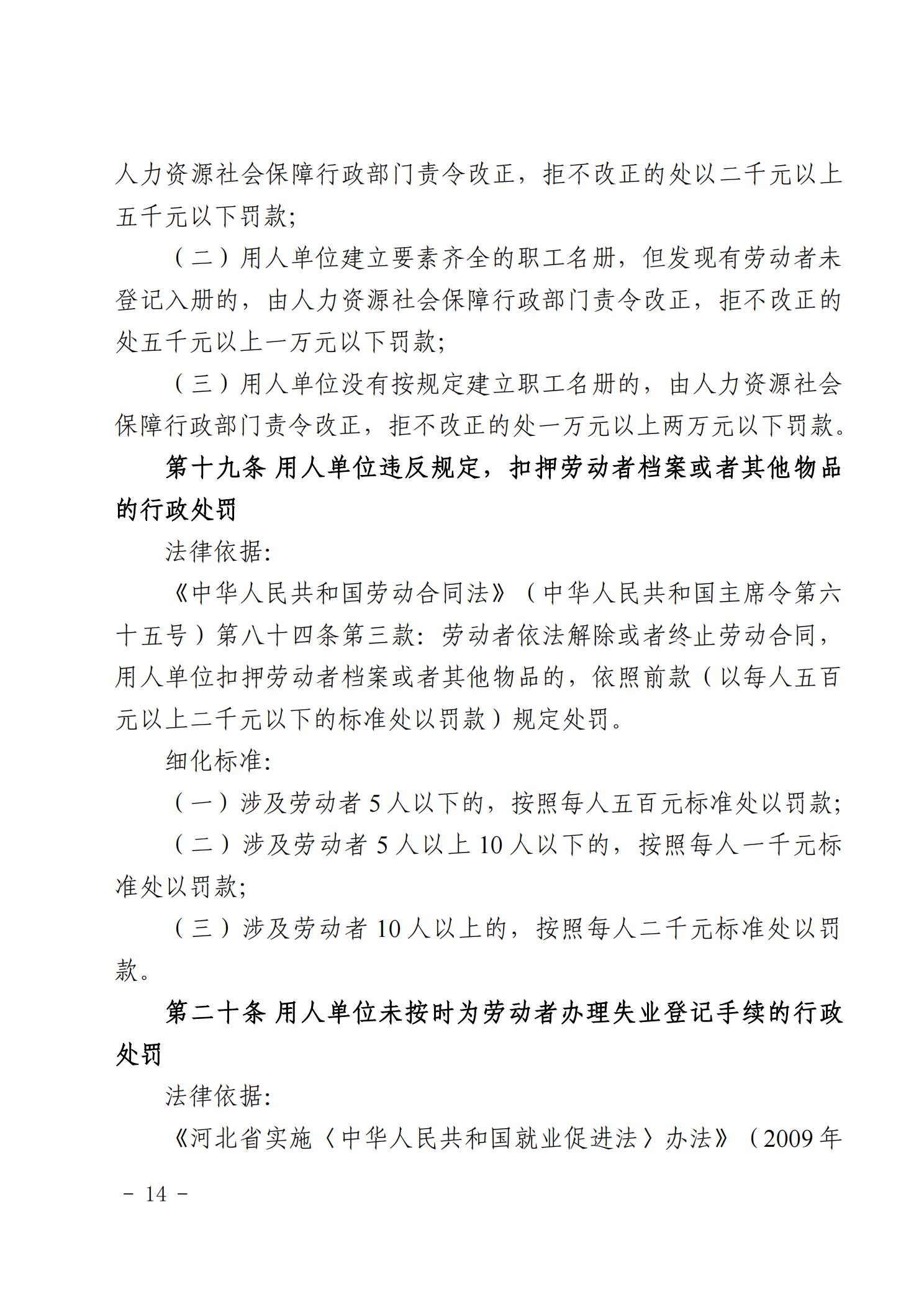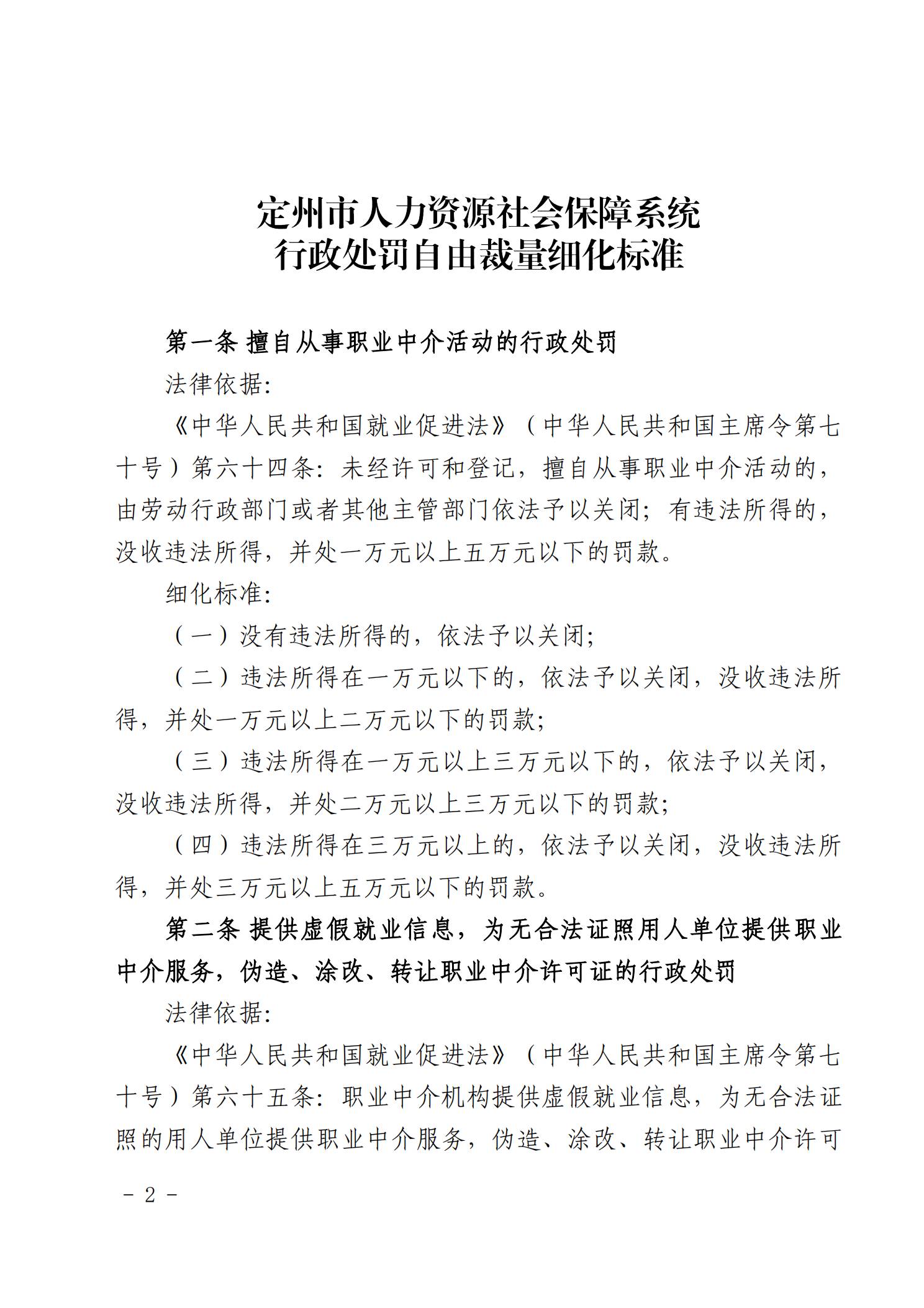 定州市人力資源社會保障系統(tǒng)行政處罰自由裁量權細化標準