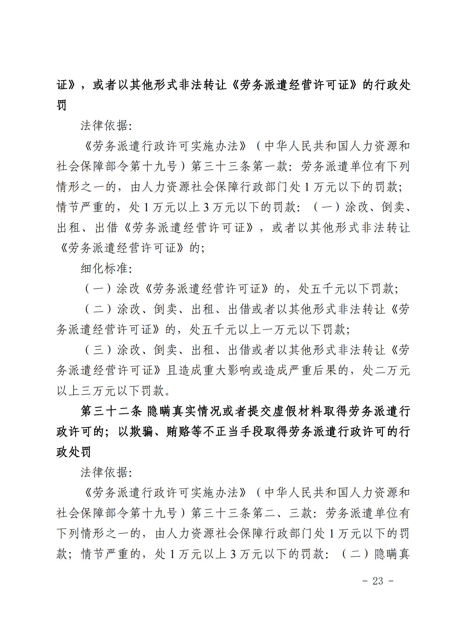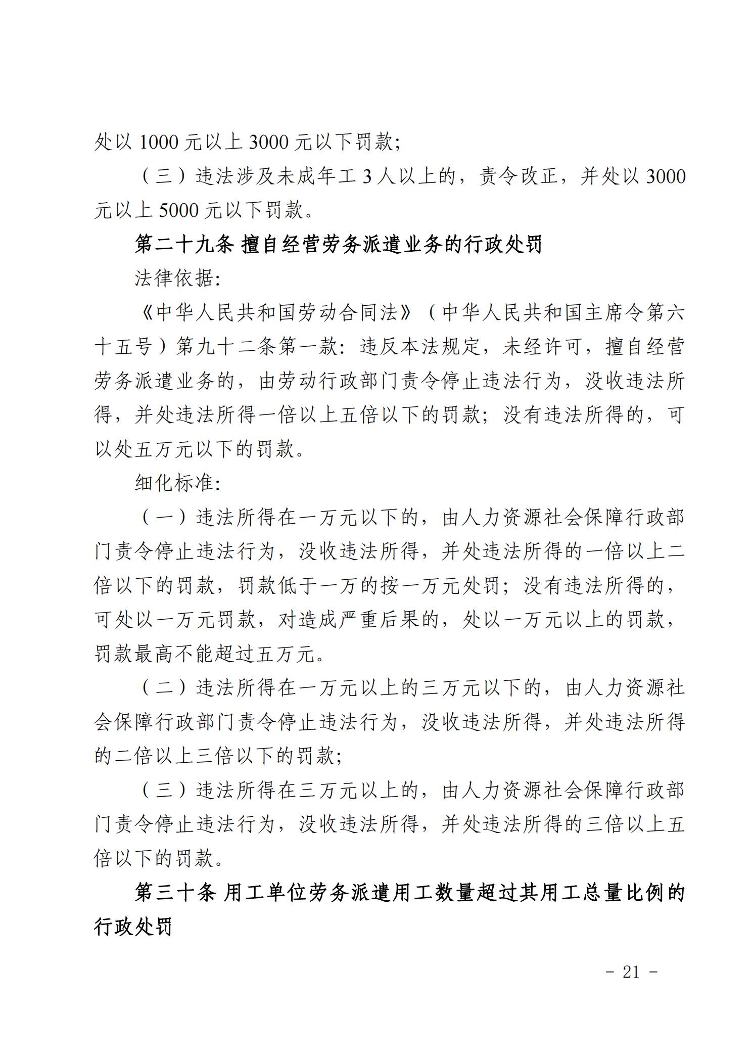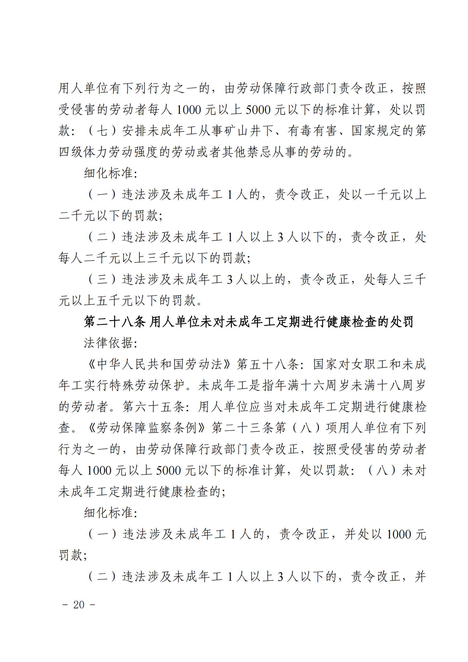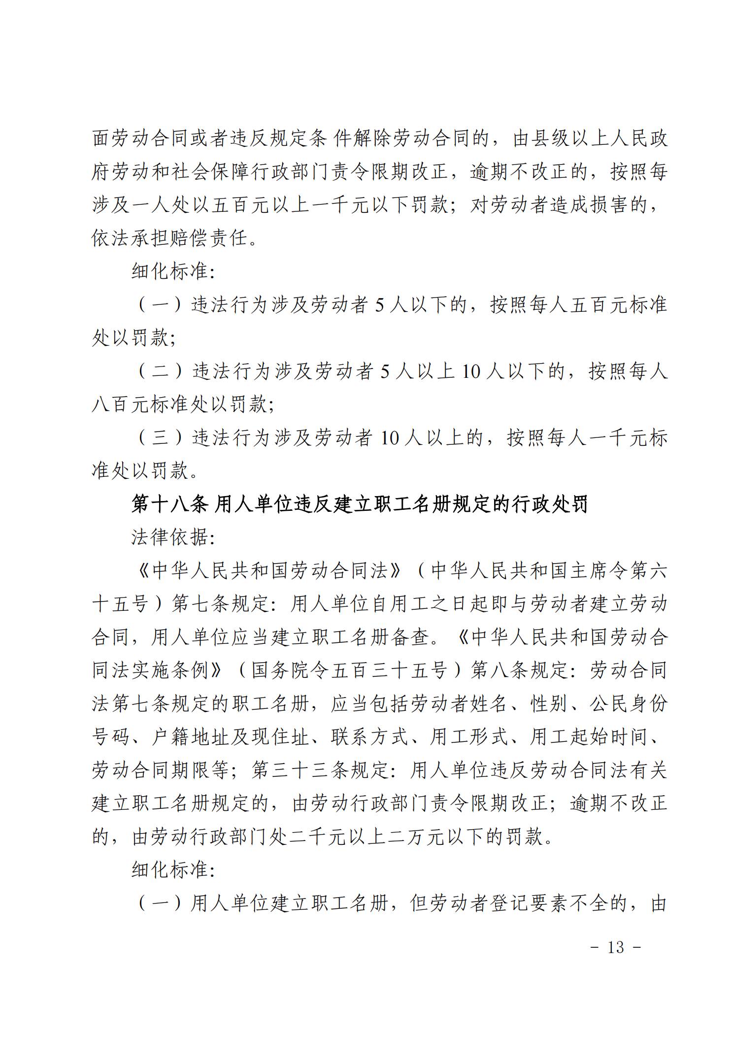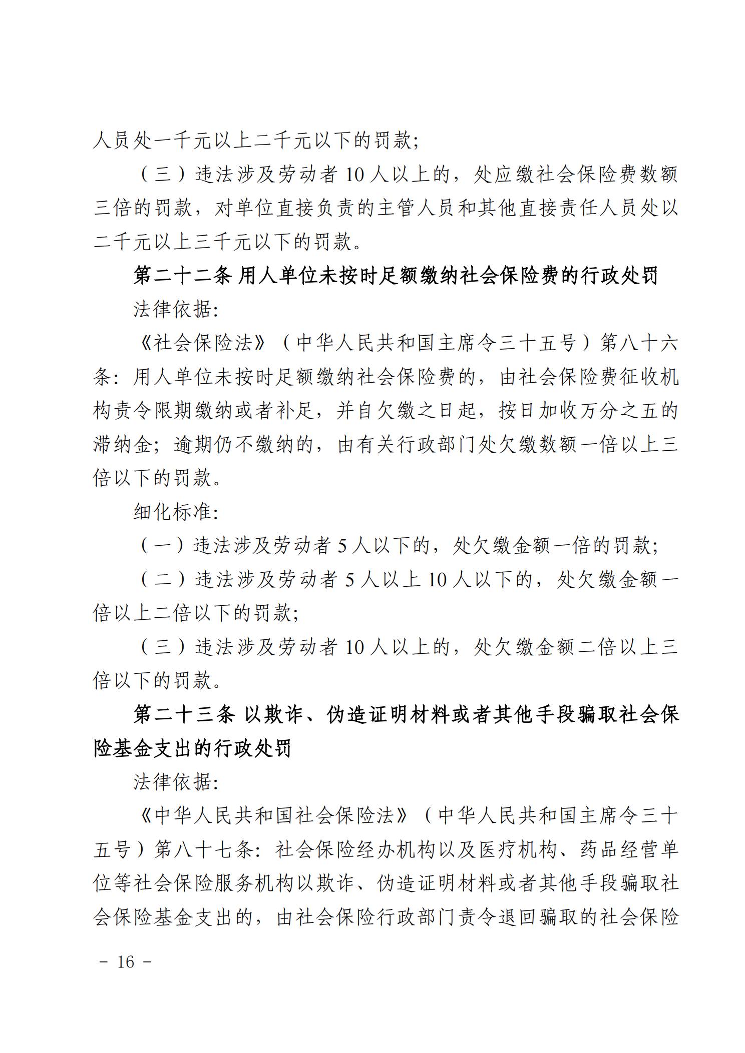 定州市人力資源社會保障系統(tǒng)行政處罰自由裁量權細化標準