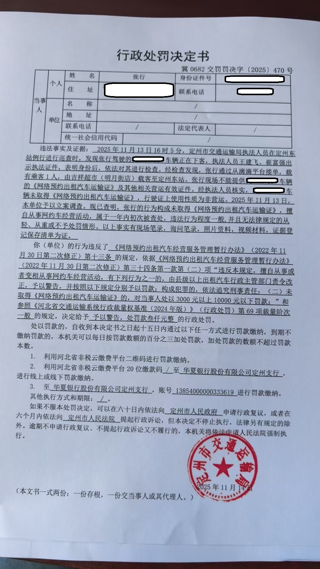 定州市交通運輸局行政處罰決定書冀0682交罰罰決字〔2025〕470號