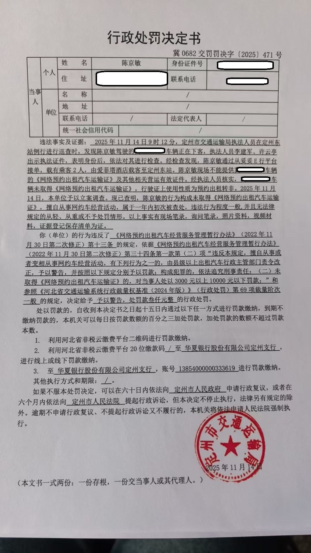 定州市交通運(yùn)輸局行政處罰決定書冀0682交罰罰決字〔2025〕471號(hào)