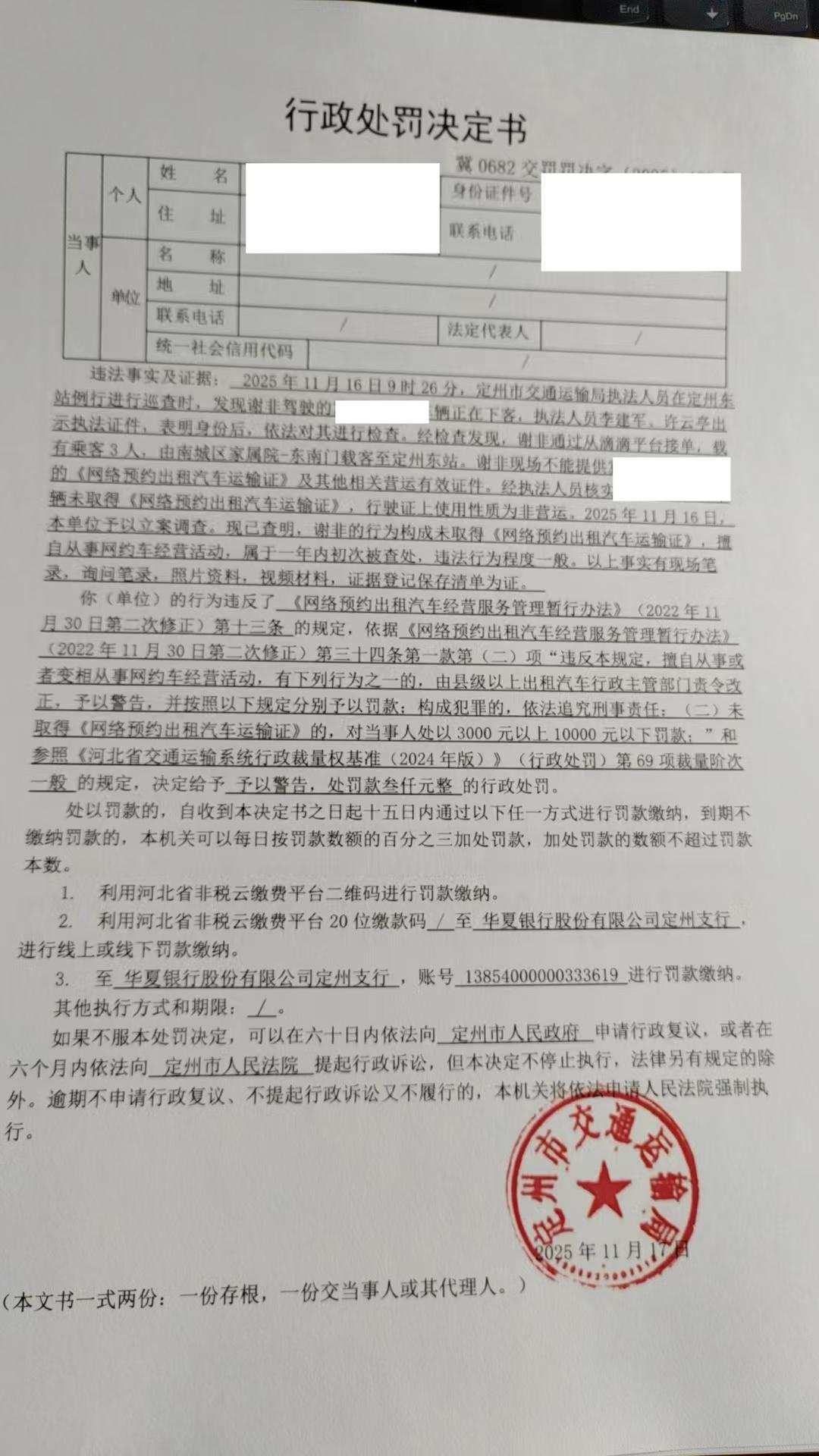定州市交通運輸局行政處罰決定書冀0682交罰罰決字〔2025〕475號