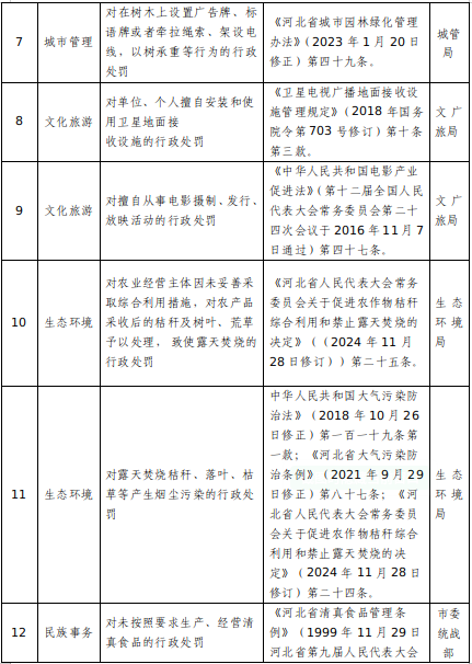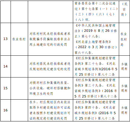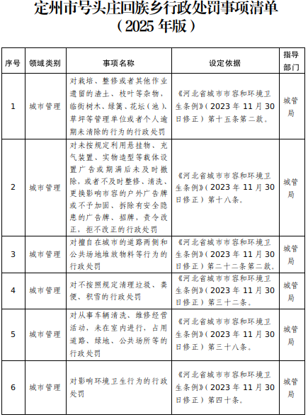 定州市號頭莊回族鄉(xiāng)行政處罰事項清單